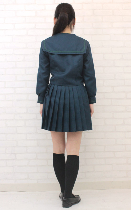 長袖のセーラーブラウス、プリーツスカートとリボンのセットです!ちょっぴり珍しいセーラー襟の緑ラインがとってもおしゃれ!胸元にちょこんとついたリボンは、スナップボタンで取り外し可能です。