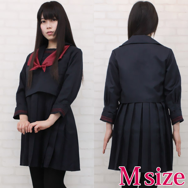 - 仕様Mサイズ:B80〜90cm・W58〜79cm 丈:ジャケット41cm(袖丈47cm、肩幅39cm)・ワンピース81cm セット内容:ジャケット(ファスナーなし、胸元スナップボタン留め)・ジャンパースカート(サイドファスナー、スナップボタンあり)・スカーフ 赤のラインがキュート!珍しいジャンパースカートタイプのセーラー服(M)。