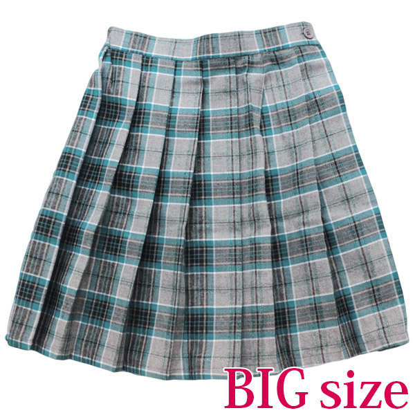 - 仕様BIGサイズ:W〜88cm 丈:スカート46cm セット内容:スカート(横ファスナー、ボタン留め、ウェスト一部ゴム入) 女子校生コスプレで大活躍!お洒落なターコイズブルー×グレーのラメ入りチェック柄プリーツスカート(BIG)。