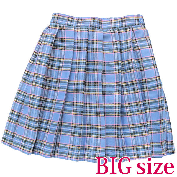 - 仕様BIGサイズ:W〜87cm 丈:スカート46cm セット内容:スカート(横ファスナー、ボタン留め、ウェスト一部ゴム入) 一着は持っておきたいヘビロテアイテム!爽やかな水色のチェック柄プリーツスカート(BIG)。