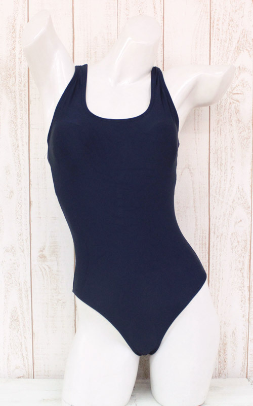 カラダのラインがくっきり見えちゃう、ちょっぴりセクシーな紺カラーのスク水。