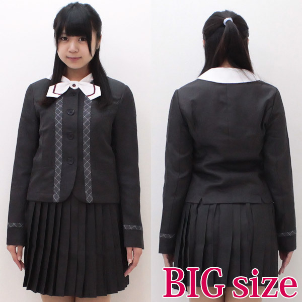 - 仕様BIGサイズ:B88〜104cm・W76〜88cm シャツ:着丈58cm・袖丈59cm・肩幅45cm スカート:着丈48cm ジャケット:着丈57cm・袖丈64cm・肩幅43cm セット内容:シャツ、スカート、ジャケット 素材:ポリエステル100% 本物と区別がつかないほど、クオリティーの高い仕上がりに誰もがビックリ!フロントのチェックラインがとっても可愛い冬用の制服コスチュームに、男女兼用で着られるBIGサイズが登場しました。
