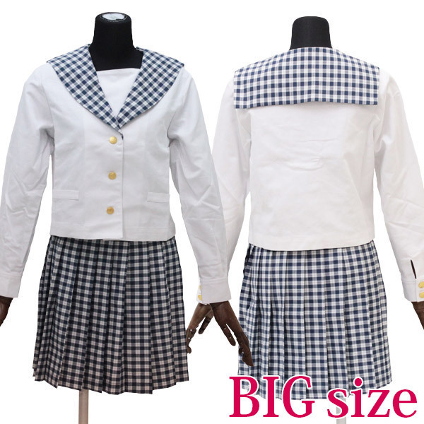 ●オールシーズン対応可能な長袖の中間服●短め丈のセーラーブラウスは前開きボタン仕様●胸当てはスナップボタンで取り外し可●プリーツスカートのウエストはアジャスター調整式●大きいさんも着られるBIGサイズ。
