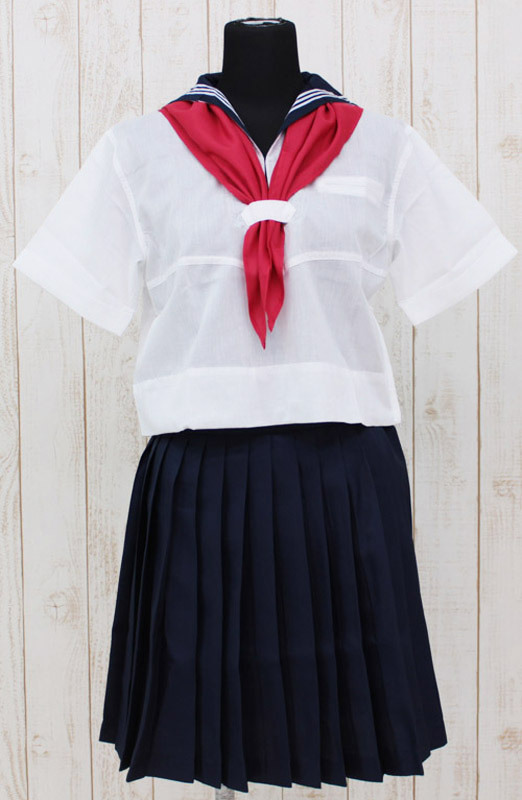 ●ホワイト×ネイビー×レッドの夏制服●スカーフ留め付きトップス●学生服定番のキュートなプリーツスカート●ぽっちゃり体型の方でも安心のBIGサイズ。