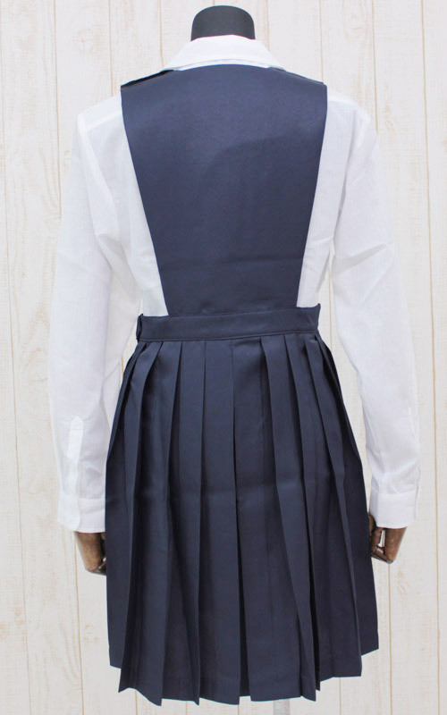 ●着脱簡単な肩ボタン付きジャンパースカート●可愛らしい丸襟の長袖ブラウス●丸襟と相性バツグンの紐タイ。