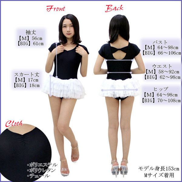 チュールスカート付き半袖レオタード(後ろリボン) 黒×白 BIG