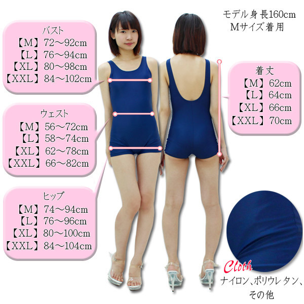 - 仕様XXLサイズ:B84〜102cm・W66〜82cm・H84〜104cm 着丈70cm セット内容:水着単品(前身頃全面に裏地付き、胸部にパット付き) 素材:ナイロン、ポリウレタン、その他 安心縫製の裏地&パッド付き♪ズボンタイプの本格的なスクール水着コスチューム(XXLサイズ)。