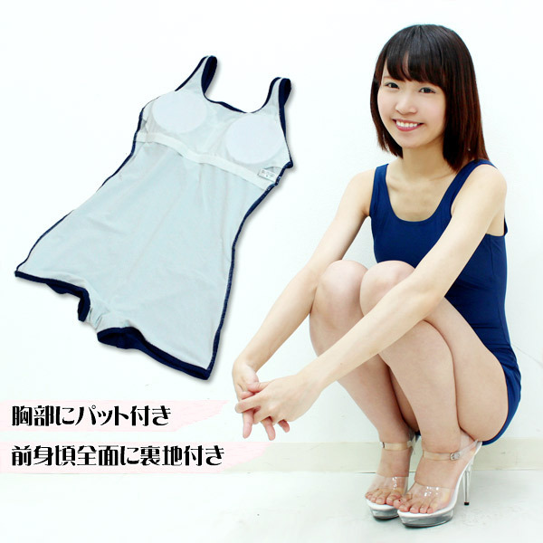 王道の紺色スク水!ズボンタイプなので気になる部分もカバー出来ちゃいます。