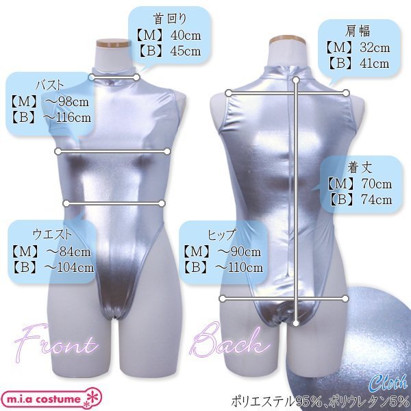 - 仕様Mサイズ:B〜98cm・W〜84cm・H〜90cm・肩幅32cm・首周り40cm・着丈70cm セット内容:レオタード単品(後ろファスナー) 素材:ポリエステル95%、ポリウレタン5% エナメルのような光沢が眩しい!ギリギリのハイレグに彼の視線は集中♪身体のラインが綺麗に出る素材なので、光沢感と相まってとても着映えします。