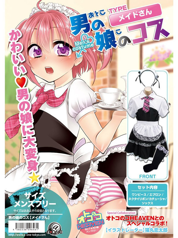 - 仕様フリーサイズ(メンズ) マネキン:胸囲97cm・胴回り75cm・腰周り95.5cm セット内容:ワンピース・エプロン・ネクタイリボン・カチューシャ・ソックス パッケージ:35.5×25.0×5.5cm 男の娘待望、メンズフリーサイズ!桃色ネクタイが超可愛い、メイド服コスチューム。