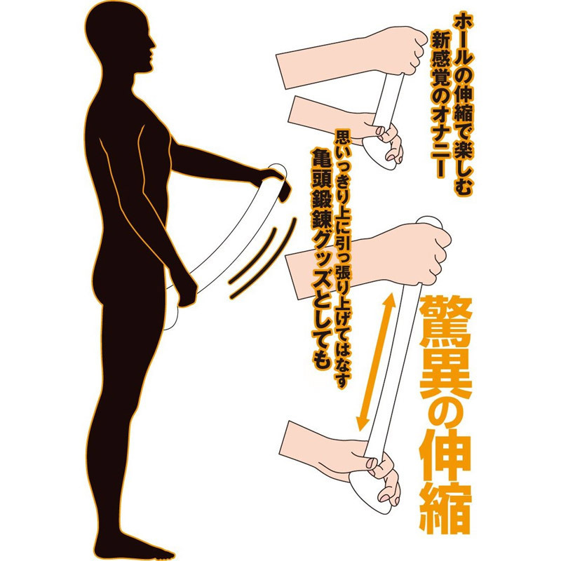 - 仕様非貫通型 パッケージ:26.5×10.0×5.0cm 本体:全長20.0cm(挿入部14.5×4.0cm) 驚愕、メチャ伸び!亀頭の先から玉袋まで包み込んでスライドさせる、白いシリコンオナホール。