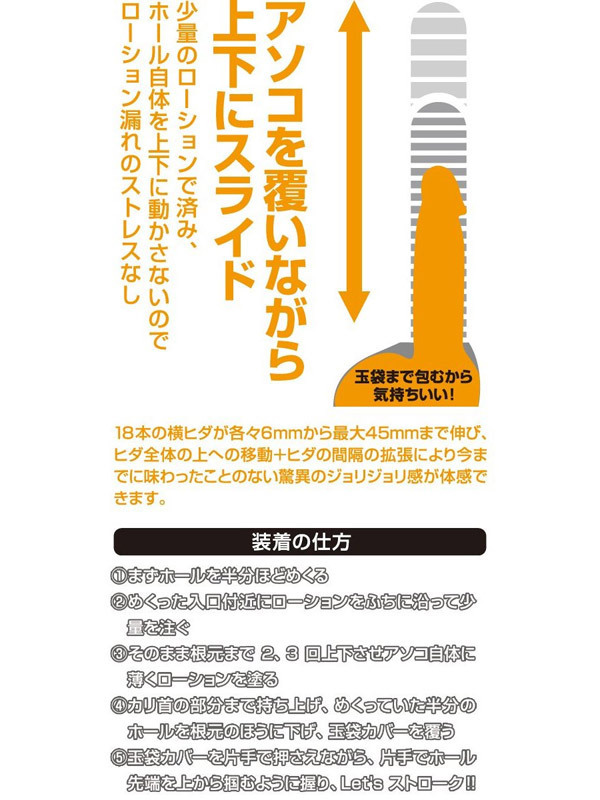 ショリショリ刺激がたまらない!シンプルな超伸縮ヒダ系オナホール(非貫通型)です。