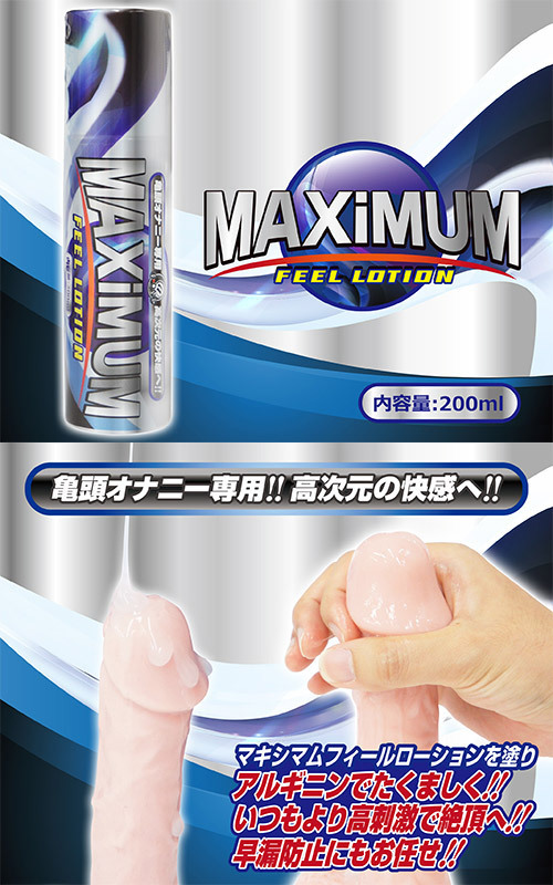 - 仕様ボトル:18.7×4.4cm 勃起力が上がる!?アルギニン、メントール成分を配合した、亀頭オナニー専用ローション「マキシマムフィールローション」(200ml)。