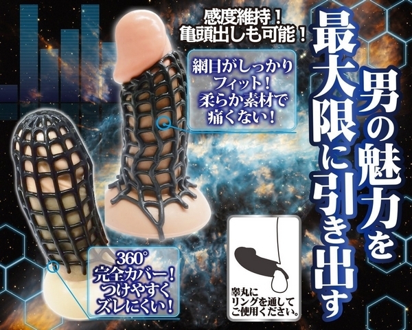蜘蛛の巣で男性力を強化!軽い着け心地でもしっかりフィットするペニスサック。