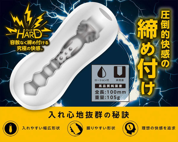 - 仕様非貫通型 パッケージ:14.0×8.0×5.0cm 重量:105g 幅広で握りやすく入れやすい形状、理想の快感を追求した純国産で高品質な高刺激系オナホが登場!容赦ない締め付けが究極の快感を生み出すフラッシュタイプは快感に特化!コリコリした刺激のまばらな突起と、4段の締め付けが快感を誘発。