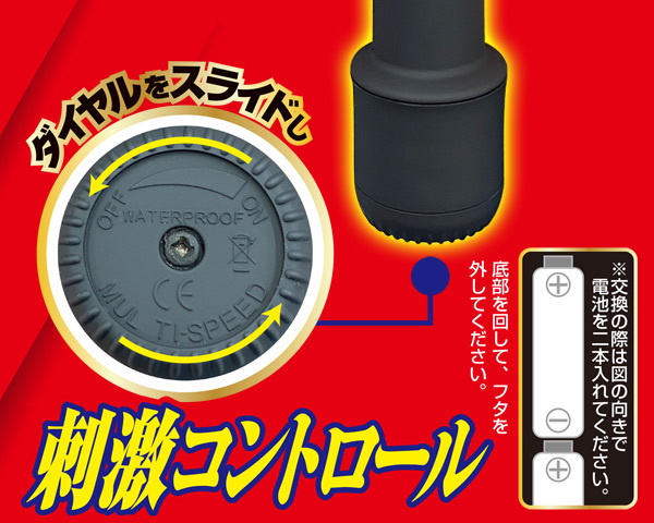 - 仕様パッケージ:22.0×5.0×6.0cm 本体:全長18.0cm・ヘッド高さ5.2cm・ヘッド幅3.5cm 電池:単三電池×2本使用 くの字に曲がった幅3.5cmの丸い先端形状でGスポを的確に捉え徹底的に刺激、中を圧迫しながら強烈振動を加えれば大量潮吹きまで一直線!ダイヤルを回すだけの無段階調整式で初心者でも簡単♪挿入部18cm、滑らかマット加工を施した電池式バイブ。