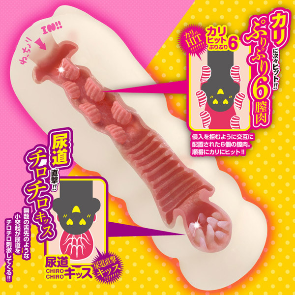 挿入口から中盤に至るまでに設置された6つの膣肉球がカリを連続ヒット!横ヒダの刺激を受けながら最奥へ到達すると、無数の触手がチロチロと尿道を刺激する♪たっぷり濡らしてぬちょぬちょ肉穴をたっぷり味わおう!ローション付