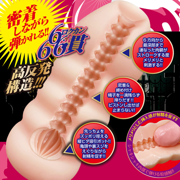 苛烈を極める6方向からの肉ヒダ突起がヤバイ射精感を煽る!さらに狭穴さ故の締めつけ感がノンストップな搾精刺激を与えストロークを止められなくなるかもな魔性を秘めた非貫通オナホール!