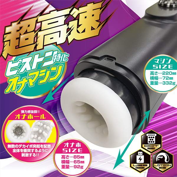 - 仕様パッケージ:26.2×10.2×10.2cm 本体:22.0×72cm・ホール8.5×6.5cm 材質:ABS、TPE セット内容:本体、充電ケーブル、ミニローション 重量:424g USB充電式 超高速!!ピストン特化オナマシン!!Dr.シコ美が寝る間を惜しんで開発した「爆シコピストン」が遂に誕生!!マッハ級のピストンで高速刺激!ハンドホールでは体験不可能な高速ピストンで、一気に絶頂まであなたを導く。