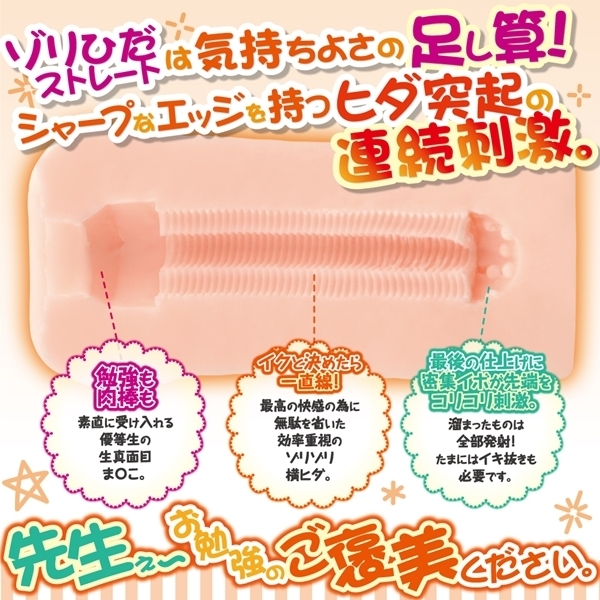 - 仕様非貫通型 パッケージ:21.0×14.5×8.2cm 本体:15.0×7.0cm 重量:391g 家庭教師になって生徒とエッチなお勉強!シャープなエッジの横ヒダがゾリゾリ連続刺激!思春期娘は横ヒダメインのゾリゾリ強刺激ホール。