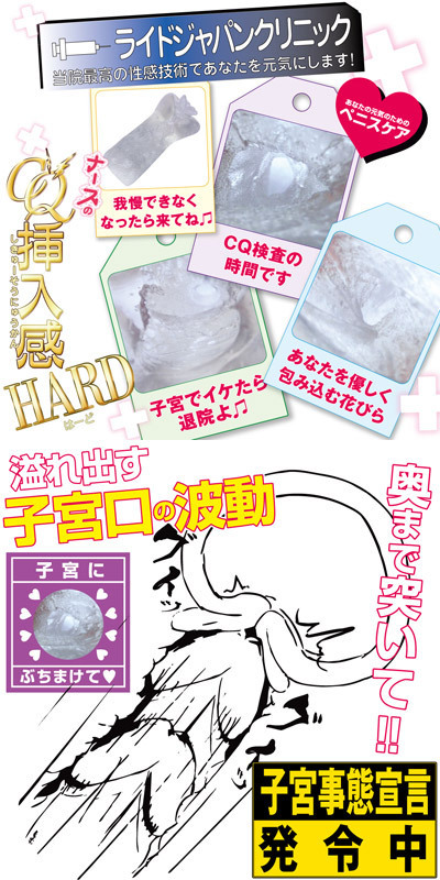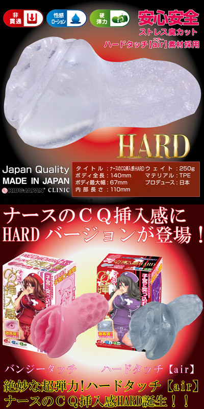 - 仕様非貫通型 パッケージ:20.5×13.5×7.5cm 本体:14.0×6.7cm 内部長さ:11.0cm 重量:250g 淫乱ナースのハードなペニスケアを体感!RIDE JAPANの人気ホール「ナースのCQ挿入感」に、超弾力のハードバージョンが登場しました。