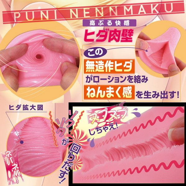 - 仕様貫通型 本体:10.5×5.0cm 内部長9.5cm 重量:120g ネバネバが気持ちいいナマ感触!ぷにぷにのヒダ肉壁が渦巻く粘膜系オナホール「ぷにねんまく」。
