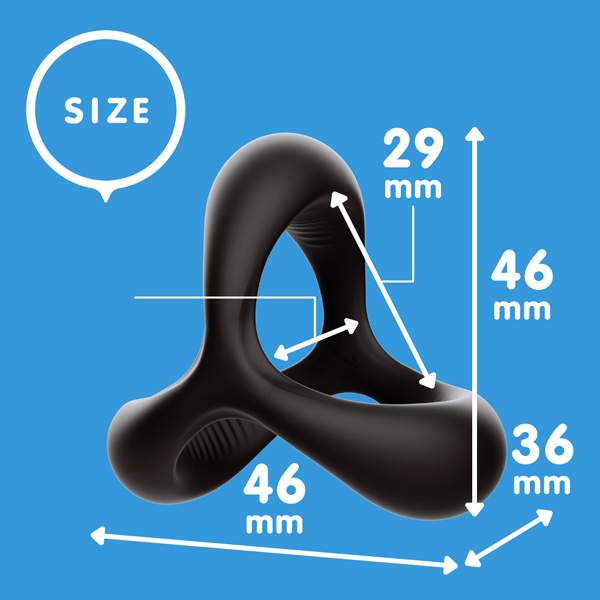 デルタ形状が根元、サオ、タマの3点をしっかり締め付け!素材は嫌な臭いがなく、特有のスベスベ感で毛の巻き込み緩和にも最適!リング内側には滑り止め付きでズレを軽減しつつ皮戻り防止にも◎早イキ防止、持続力を高めたい男性に。