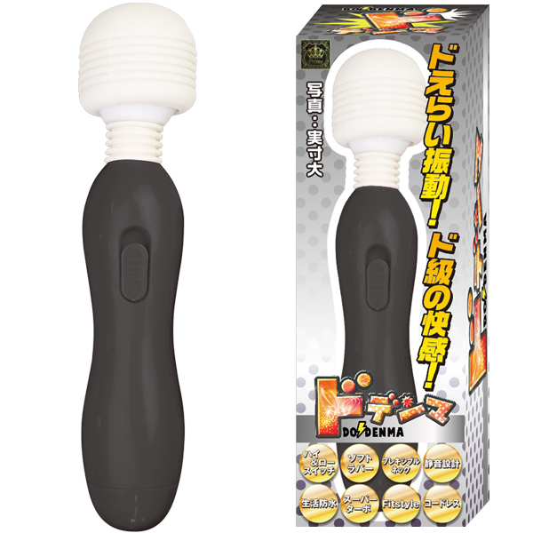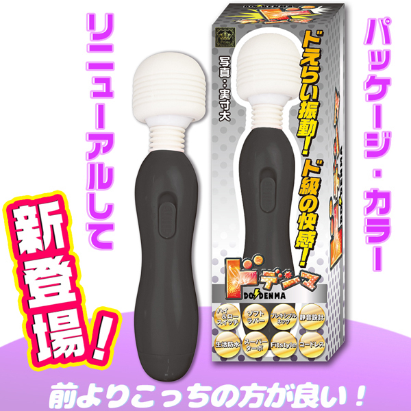 - 仕様パッケージ:17.5×6.0×6.0cm 本体:16.0×3.0cm 重量:68g 電池:単四電池×2本使用 ドえらい振動がドドーンと炸裂!超ド級の握り易さもめっちゃ嬉しいお手軽電マ『ドデンマ』がより可愛いカラーになって新登場!パッケージもリニューアルし、ソフトラバーヘッド&フレキシブルネックだから優しい当て心地です♪耳障りな音をカットした静音設計になっておりスイッチは使いやすい強弱2段階!カラー:ブラック