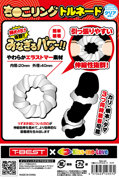 - 仕様パッケージ:17.0×10.8×3.0cm 本体:4.0×1.2cm 重量:21g <T-BEST×KISS-ME-LOVE>夜もがんばリングで大人気のやわらかメンズリング「ち●こリング」が、トルネードになって新登場!今度のち●こリングは「特殊形状3個セット」!トルネードデザインのリングを3つもセットにしました!うずまき状に巻き付いた凹凸が伸縮率を高めてより効率的な装着感を生み出します。