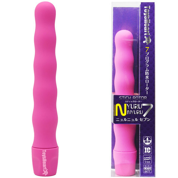 - 仕様パッケージ:18.5×4.5×3.0cm 本体:15.5×2.3cm 重量:39g トイズハート社から、スリムな見た目でも高刺激を味わえるスティック型ローター「ニュルニュルセブン」が発売されました!スベスベのフォルムでスムーズな挿入が可能な15cmの長さと23mmの最大径で、波打つうねり形状が快感を演出します。
