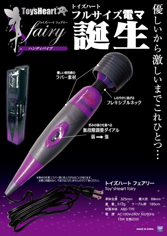 - 仕様ケース:36.0×6.8×5.8cm 本体:32.5×6.0cm 電マで人気のフェアリーが黒×紫に!トイズハートブランドのロゴを冠して登場です。