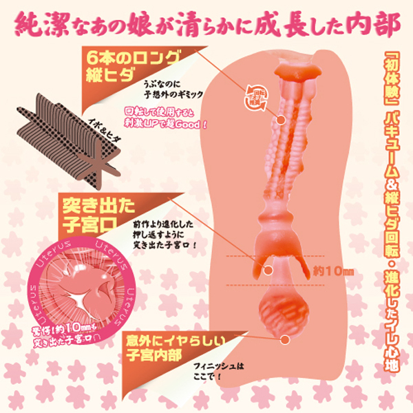 - 仕様非貫通型 パッケージ:21.3×12.7×6.7cm 本体:13.5×6.0cm・内部長11.2cm 重量:233g 純潔感がさらに進化した!!純潔なあの娘が清らかに成長した内部処女膜ギミックと突き出た子宮口は今作も健在!新形状で新たな快感そしてバキューム力アップ&超絶ギミック縦ヒダ回転!ぷりぷりのもち肌感触、ばーじんスキン!安心・安全の国内生産で素材臭と油っぽさを抑えました