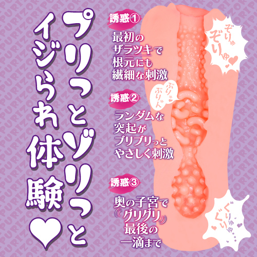 ゾリゾリ感やプリっとした弾力が味わえるコンパクトタイプのホールで軽量だからストロークしやすく扱いやすいのが特徴です♪最初のザラツキで根本にも繊細な刺激が感じられ、ランダムな突起がブリブリっとやさしく刺激しながら射精へと誘う!最奥では大粒で亀頭全体を刺激されながら、奥の子宮でグリグリ最後の一滴までイカされちゃってください♪