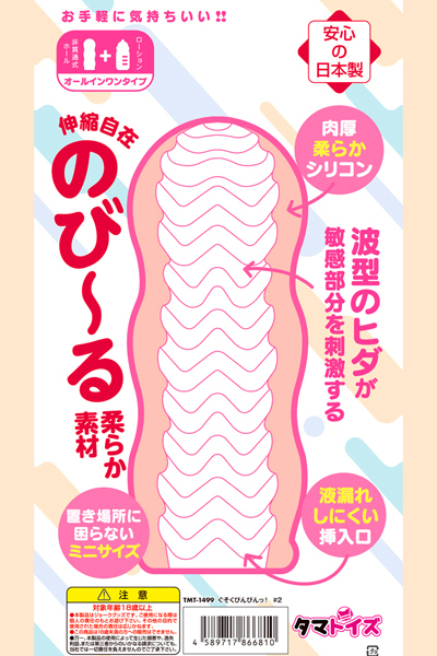 - 仕様非貫通型 パッケージ:20.0×11.0×3.0cm 本体:11.0×3.5×4.0cm 重量:56g 手軽に使える携帯タイプ♪肉厚柔らかシリコン使用!ウエーブタイプで波型のヒダが敏感部分を刺激する非貫通オナホール!伸縮自在の、のび〜る柔らか素材なのに、液漏れしにくい挿入口!舐めても安心・安全な日本製のローション付きのオールインワンオナホ。