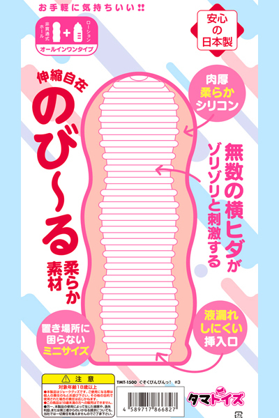 - 仕様非貫通型 パッケージ:20.0×11.0×3.0cm 本体:11.0×3.5×4.0cm 重量:56g どんな時でもすぐ使える、携帯タイプの非貫通オナホール♪肉厚柔らかシリコン使用!横ヒダタイプで無数の横ヒダがゾリゾリと刺激!伸縮自在の、のび〜る柔らか素材なのに、液漏れしにくい挿入口!舐めても安心・安全な日本製のローション付きのオールインワンオナホ。