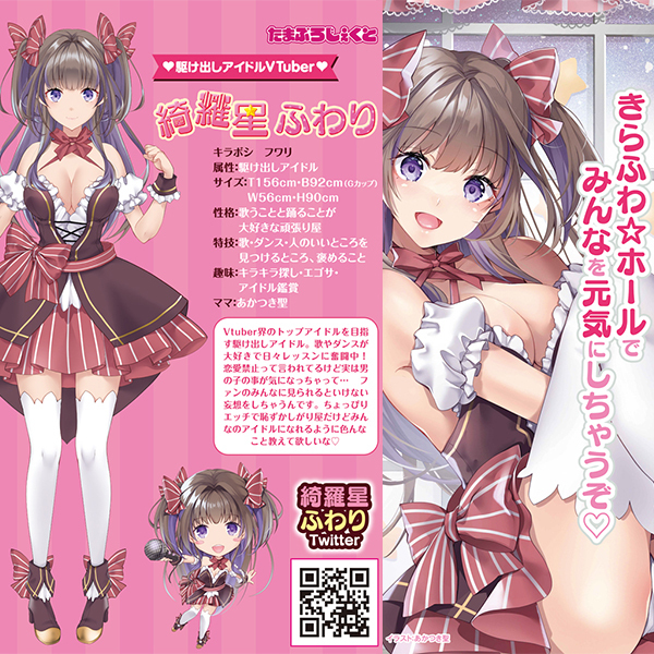 - 仕様非貫通型 パッケージ:17.5×11.7×8.0cm 本体:16.0×7.0cm 重量:400g 人気Vtuberとタマトイズが公式コラボした非貫通オナホ「駆け出しアイドルVTuber 綺羅星ふわり」。