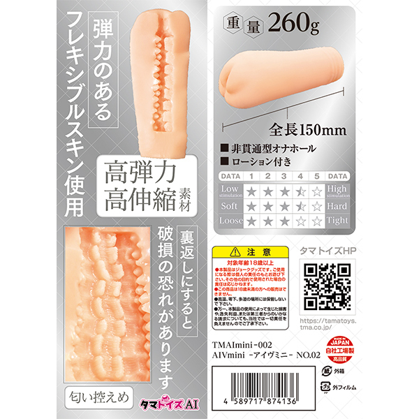 - 仕様非貫通型 パッケージ:16.0×8.0×6.0cm 本体:13.0×6.5×6.0cm 重量:260g 圧倒的な刺激を提供するために設計された、コンパクトながらも高性能なオナホール♪非貫通タイプでありながら、内側の構造は非常に工夫されています!上部には鋭い山型突起が密集しており、強烈な刺激を与える仕組みになっています♪下部には2本のミゾ付き縦ヒダが配置されており、裏スジを的確にガイドし、擦り上げる感覚を提供します!高弾力で高伸縮性のあるフレキシブルスキンを採用しており、快適な使用感を約束します♪上下で異なる2つの刺激が楽しめるため、使用者は飽きることなく、毎回新鮮な体験を得ることができます!コンパクトなのでハンドリングがしやすく、手軽に使用できるのも魅力の一つ♪品質とヌキ性能を兼ね備えたこのオナホールは、一度使えば手放せなくなること間違いなし!サラサラのローションとの相性も抜群で、より滑らかな使用感を楽しむことができます♪あなたのプライベートタイムを格上げする最高のパートナー!是非お試しください♪●メーカー型番:TMAImini-002