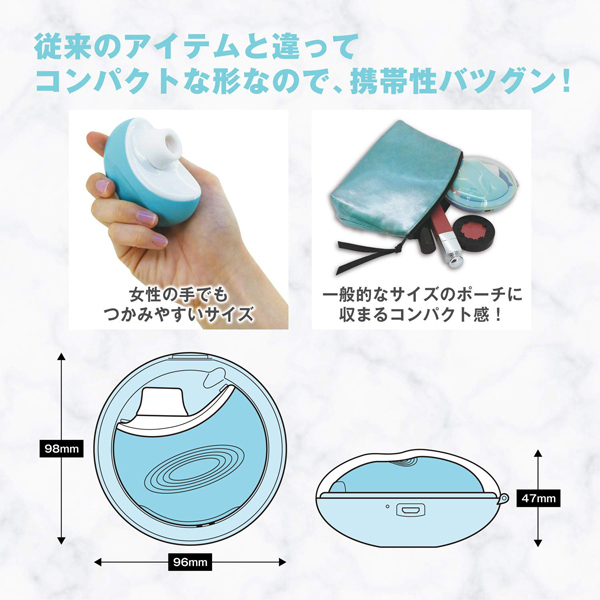- 仕様パッケージ:13.1×13.1×5.2cm 本体:9.8×9.6×4.7cm 重量:179g USB充電式 <ジューシーラムール・シークレットラブ>「吸って」「震える」CHU ROTORまるで美容家電!コンパクト型ケース付●Suction&Vibration・選べる吸引強弱と振動パターン・5段階吸引・6種振動●コンパクトケース付・水洗い可能・見つかってもばれにくい美容家電のようなパクト型ケース●Removable&Washable・見つかってもばれにくい美容家電のようなパクト型ケース・アタッチメント部分は取り外し可能・丸洗いできるためとても清潔●USBCharging・USB充電式●ケースに入れたまま充電可能、約110分の充電で約120分使用可能。