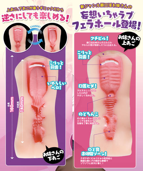 上あごのコリッとした前歯や下あごの舌のギミックで、妄想いちゃラブなフェラの気持ちよさ2度お楽しみ頂けます!