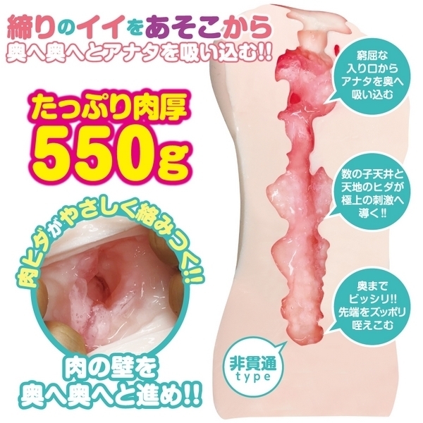 ●完熟リアル成型の豊満ボディ●重量550gのぷにすべな感触●締まりのいい窮屈な入り口●数の子天井と上下ヒダで刺激●先端をずっぽり咥え込む最奥。
