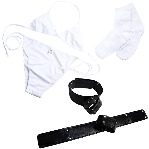 - 仕様パッケージ:28.0×18.0×7.0cm 本体:フリーサイズ(マジックテープ) セット内容:手枷、もも枷、ブラ、パンツ、ソックス 重量:254g 日本製 大好きなあの娘を手軽に拘束♪ggシリーズの「首輪」です。