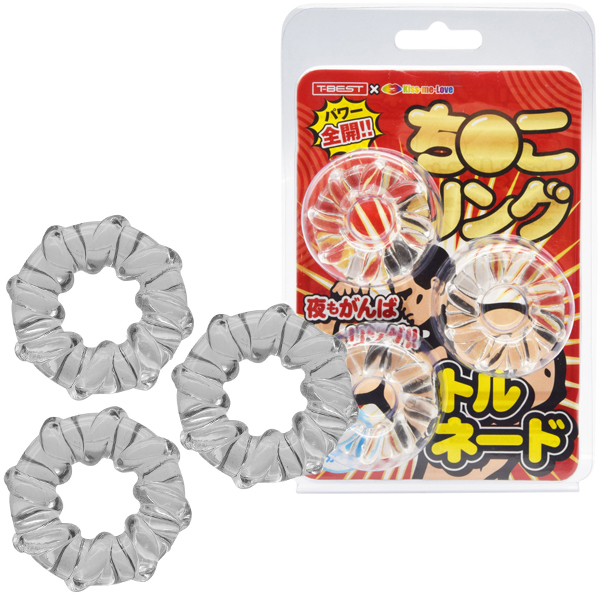 - 仕様パッケージ:17.0×10.8×3.0cm 本体:4.0×1.2cm 重量:21g <T-BEST×KISS-ME-LOVE>夜もがんばリングで大人気のやわらかメンズリング「ち●こリング」が、トルネードになって新登場!今度のち●こリングは「特殊形状3個セット」!トルネードデザインのリングを3つもセットにしました!うずまき状に巻き付いた凹凸が伸縮率を高めてより効率的な装着感を生み出します。