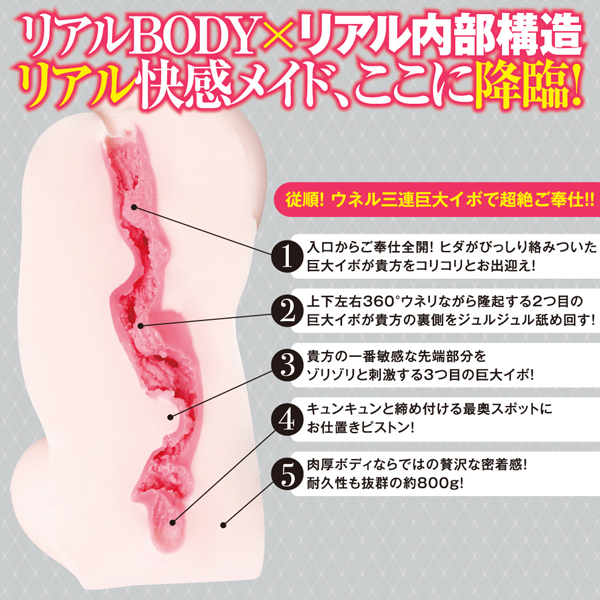 - 仕様非貫通型 パッケージ:18.0×10.0×8.0cm 本体:17.5×14.0×10.0cm 重量:800g ずっしり肉厚!重量約800g!極上ダイナマイトBODYのご奉仕メイドが降臨!!巨乳メイドが完全従順!何でも言うことを聞いてくれる従順過ぎるメイドちゃんの中は、ウネル三連巨大イボで超絶ご奉仕してくれます!ぷにコリ超リアル挿入感を楽しんでね!最高の揉み心地のふわふわおっぱいもお気に召すままモミモミしてくださいませ!直接肌に触れるものだから安全性と感触にこだわった高品質なエラストマーを使用しています。