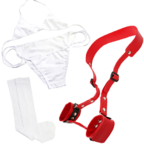 - 仕様パッケージ:30.0×19.8×5.0cm 本体:フリーサイズ セット内容:枷、ブラ、ショーツ、ニーハイ 重量:230g 買って直ぐに楽しめる!ベルト、ブラ、紐パン、ニーハイがセットになった辱め遊戯シリーズ「抱え込み拘束」赤(日本製)。