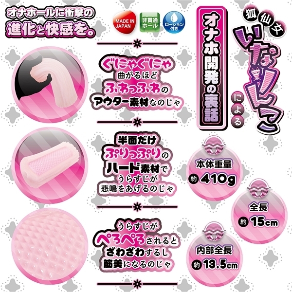 - 仕様非貫通型 パッケージ:20.0×8.5×8.5cm 本体:15.0×6.7cm 重量:410g 狐仙女による新たな刺客が届いた!!それが「半面二層!!ざわペロ筋美」である。