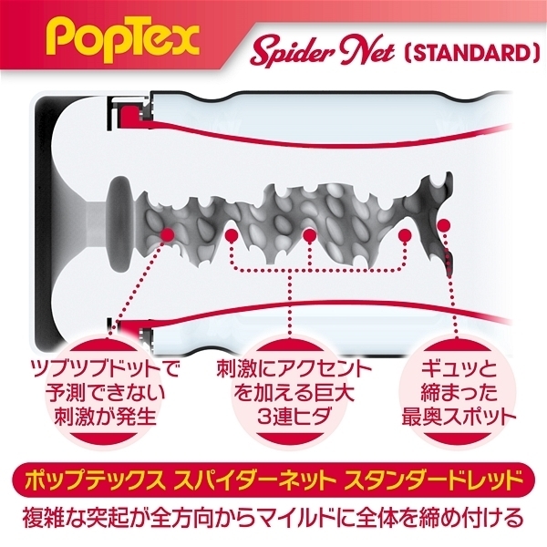 - 仕様非貫通型 パッケージ:17.5×7.5×7.5cm 本体:17.0×7.3cm 重量:280g ポップテックススパイダーネットカップスタンダード<リアルな締め付け×ネットヒダ刺激の高機能カップホール>新開発SpiderNetTechnology搭載型カップホール!ホールを包み込む柔軟性に優れたシリコンネットで最も気持ち良い形状に自動的に変形することでスポンジでは再現できない自然なフィット感とリアルな締め付け感を実現しました!内部構造は網目状のネットヒダの中心にアクセントのイボ刺激のアクセント!強力に吸い付く最奥のバキュームスポットは天面の「OneWay」シールを剥がし空気を抜いて挿入することで内部のまとわりつき感をより楽しむことが出来ます。