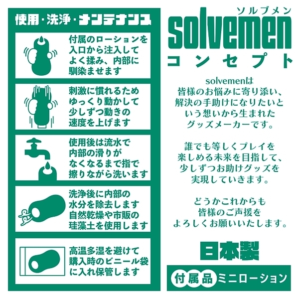- 仕様非貫通型 パッケージ:18.0×8.0×8.0cm 本体:14.5×7.5cm 重量:440g ソルブメンはあなたのお悩みを解決する存在です。