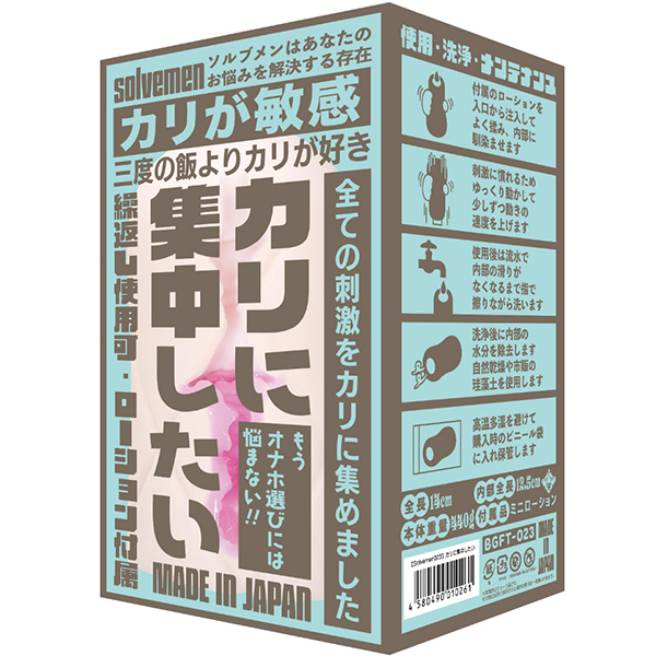 - 仕様非貫通型 パッケージ:18.0×8.0×8.0cm 本体:14.0×7.5cm・内部長12.5cm 重量:440g カリ部分への快感を追求した非貫通型オナホールです。