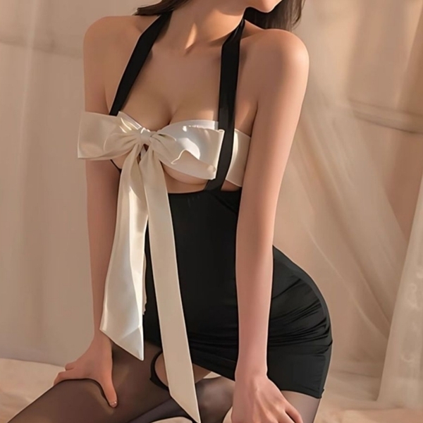 - 仕様パッケージ:35.0×24.0×0.9cm フリー 重量:119g セット内容:ボディコン、Tバック ※ストッキングは付属していません 大胆でありながら可愛らしさも兼ね備えたボディコンワンピースセットです!セット内容はボディコンとTバックで、ストッキングは付属していません♪胸元に大きなリボンブラがあり、結び方次第で谷間の印象を自由に変えられます!ブラックの生地は着やせ効果とボディ引き締め効果が抜群で、ウエストからヒップにかけてのタイトなミニスカートが美しいラインを演出します♪背中は大胆に開いたホルターネック仕様で、後ろ姿も魅力的に見せます!動くたびに見えそうな限界ギリギリのミニスカートで、普段使いはもちろん特別なシーンにもおすすめです♪洗練されたデザインとスタイリッシュなフォルムで、魅惑的なコスプレ体験をお楽しみください!このセットで特別な時間を華やかに彩りましょう♪