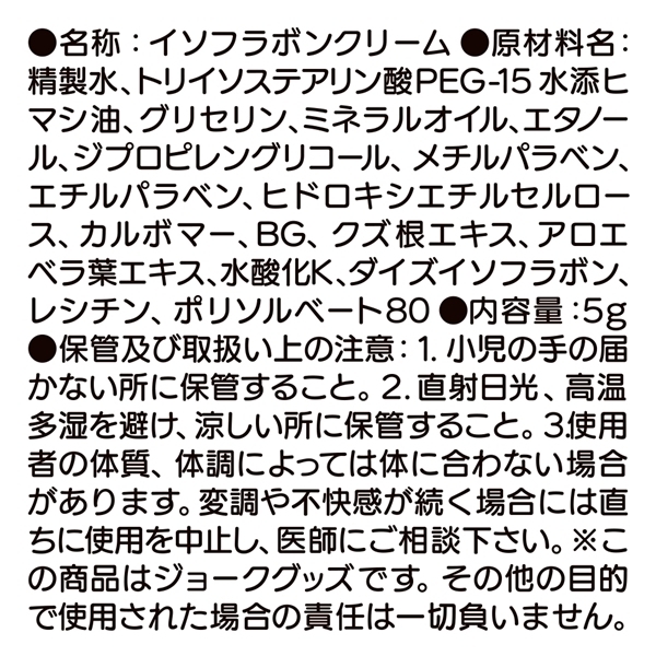 - 仕様パッケージ:26.5×26.0×18.0cm 本体:16.0×27.5×25.0cm 重量:5000g ローション(25ml)付き やさしく塗り込むことで繊細な部位のケアをサポートする女性用クリームです♪大豆イソフラボンやアロエエキス、ハーブ成分を配合し、しっとりとなめらかな質感が特長です!適量を手に取り、乳首まわりにやさしくなじませるだけの簡単ケア♪肌にやさしい処方で、デリケートな部位にも安心して使用できます!持ち運びしやすいサイズ感で、旅行先やリラックスタイムにもおすすめです♪使用の際は必ず相手の同意を得た上でご利用ください!ローション付きで使いやすさも◎♪日本製ならではのこだわりが詰まった、ジョークグッズとしても楽しめるアイテムです!日々のボディケアのひとつとして、おだやかな時間を演出します♪